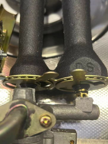 The air intake adjustable blades and burner perfectly connected .No gap between them.